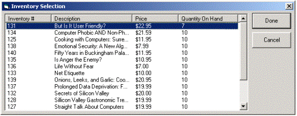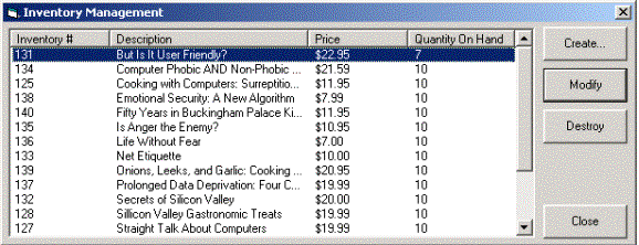 Figure 12. Inventory management Figures 10, 11, and 12: The DNA PurchaseOrder application also allows users to perform basic purchase order, account, and inventory management functions (for example, create, modify, and destroy), although some of the account and inventory management operations require the user to be an application "Administrator." Note While the DNA PurchaseOrder application illustrates many of the fundamental characteristics of a full-blown, production Windows DNA application, it is important to remember that the DNA PurchaseOrder application is a sample application, and is not designed to serve as a production system. The DNA PurchaseOrder application is designed merely to aid developers in gaining a clearer understanding of the Windows DNA application design and development process.
