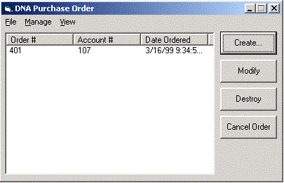 Figure 9. DNA PurchaseOrder application users can purchase a variety of books from the available "inventory" as part of a single purchase order, similar to the way you might purchase books from your favorite online bookstore (see Figure 8). Beyond processing purchase orders, the DNA PurchaseOrder application also allows users to do basic purchase order, account, and inventory management functions (for example, create, modify, and destroy), although some of the account and inventory management operations require the user to be an application "Administrator."