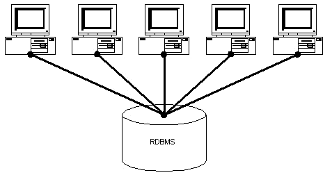 Figure 3. Two-tiered client/server applications are non-autonomous, which means that clients have direct access to the application's critical resources and are free to use those resources however they desire. Because clients have direct access to the application's critical resources, there is little or nothing the application can do to protect itself from malicious or unexpected behavior, which ultimately compromises the application's overall stability. For example, a single rogue client could purposefully exhaust an application's precious critical resources in an attempt to prevent other clients from performing their work. An attack like this could render the defenseless application useless. Windows DNA applications, on the other hand, never allow clients to have direct access to critical resources. Instead, clients issue requests to special trusted components called executants that perform the business operations the application was designed to automate (for example, income tax preparation, order processing, and so on). For instance, a PurchaseOrder executant might perform the operations necessary to add a line item to a purchase order: ensuring that the desired item is in stock, calculating any sales tax, shipping charges, and so on. By forcing clients to issue requests to executants that perform business operations using critical resources in trusted, well-defined ways, Windows DNA applications remain in complete control of their critical resources, which ultimately increases the application's overall stability. Because executants are trusted components they have direct access to the application's critical resources, which means they must pay close attention to the manner in which critical resources are used. Before an executant performs any business operation on behalf of a client, it should authenticate the identity of the requesting client, validate that the client has the proper authorization to perform the requested business operation, and inspect the client's request for proper syntax and valid data. Anything less than a perfectly formatted request should be denied immediately. With such a high standard of excellence, it's reasonable to expect numerous client requests to be denied, which is why Windows DNA applications should provide executant emissaries, or emissaries for short. Emissaries are components that are designed to help clients issue perfectly formatted requests to executants to perform business operations on their behalf. One of the ways emissaries help clients is by providing them with any supplemental data the client may need in order to prepare requests. This information could be read-only snapshots of the shared data that is maintained by the executant (price lists, inventory identification numbers, and so on), or writeable per-user data that is maintained by the emissary on the client's behalf (user profile information, shopping cart contents, and so on). Another way emissaries help clients is by validating as much of the user-provided information as possible before transmitting the entire request to the executant, which helps keep network roundtrips to a minimum. To further reduce network traffic, emissaries, along with any supplemental data they may require, can be downloaded and executed directly on the client. When transmitting requests to the executant, emissaries are free to use any means at their disposal (for example, DCOM, MSMQ, Winsock, and so on).